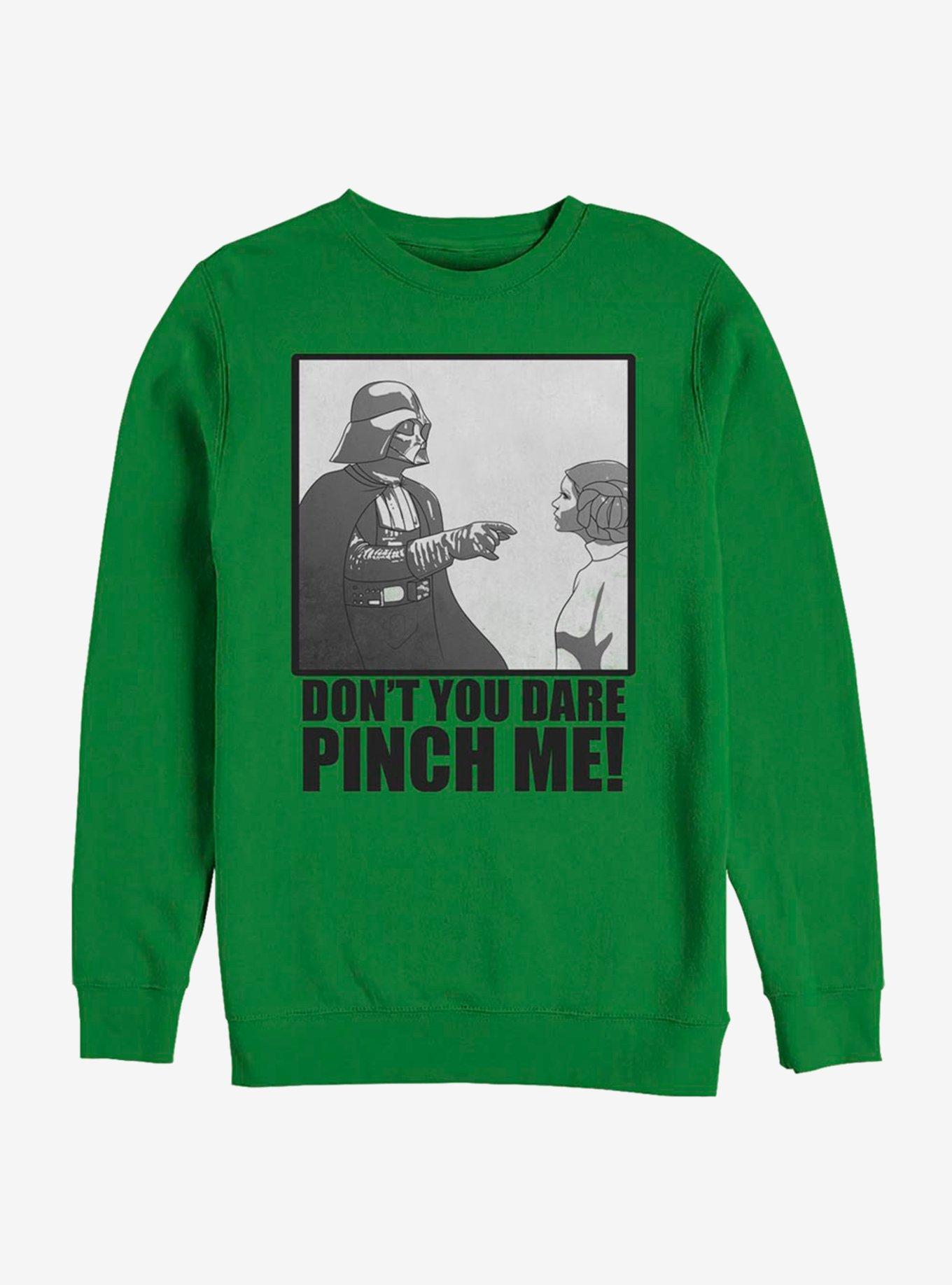 No green? No problem. When you're a Sith Lord, that is! This kelly green crewneck Star Wars sweatshirt captures Darth Vader telling Princess Leia, "Don't you dare pinch me!"