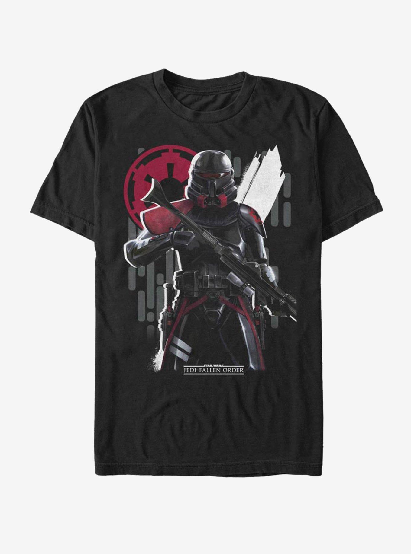 Hunt. Down. All. The Jedi. Knights. This lightweight black tee -- inspired by Star Wars Jedi: Fallen Order -- features a Purge Trooper.