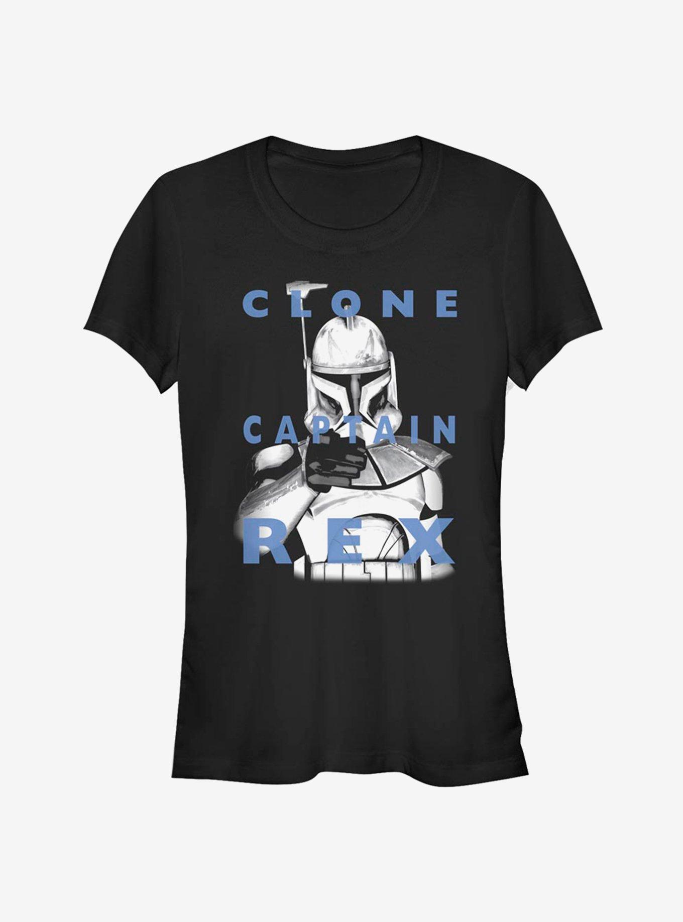 We're not droids. We're not programmed. You have to learn to make your own decisions. Wise words from Clone Captain Rex -- who appears on this fitted black Star Wars tee.