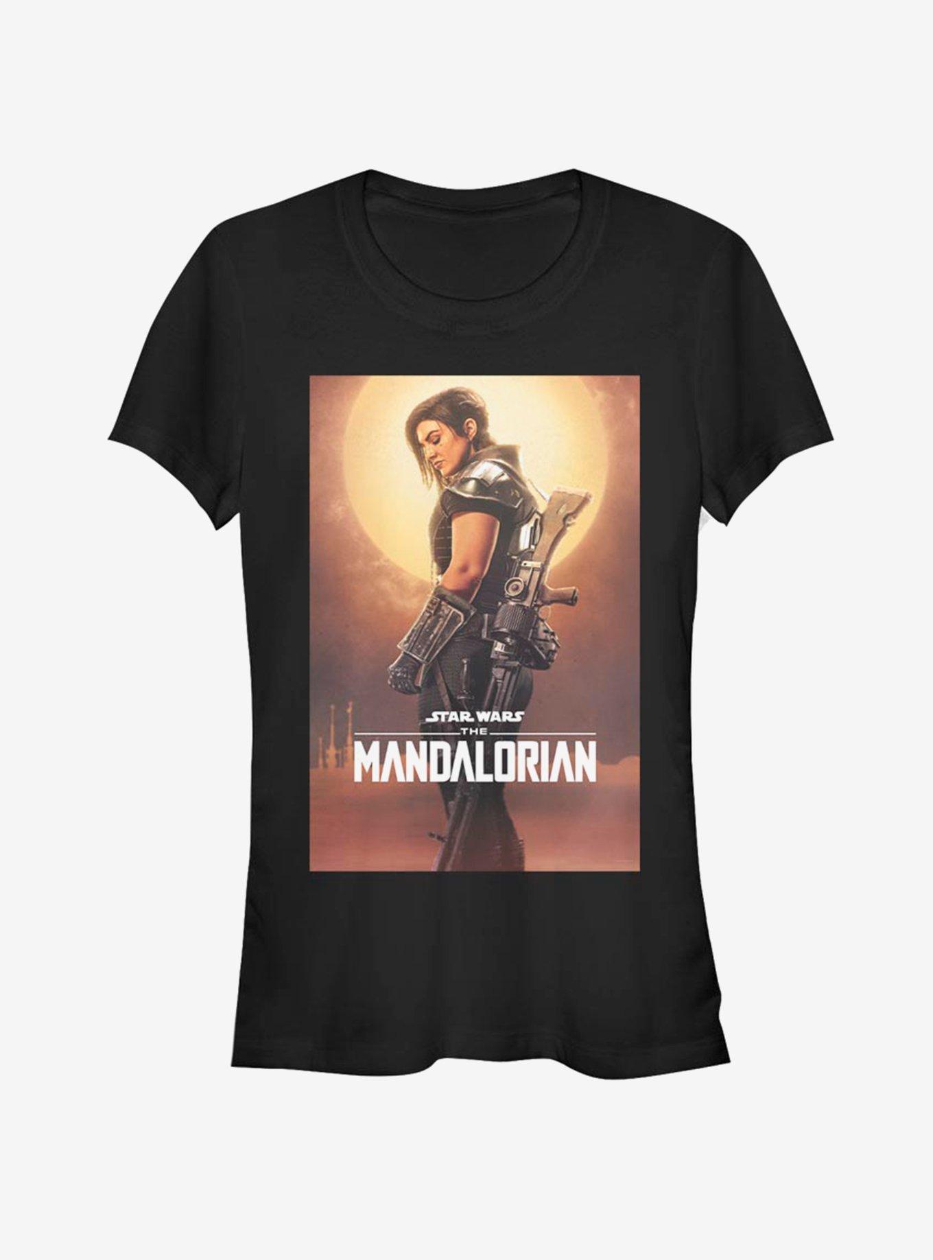 The hunt for your new favorite Star Wars tee is over. This fitted, lightweight black tee has poster art for the Disney+ series The Mandalorian screened on the front - starring mercenary Cara Dune.