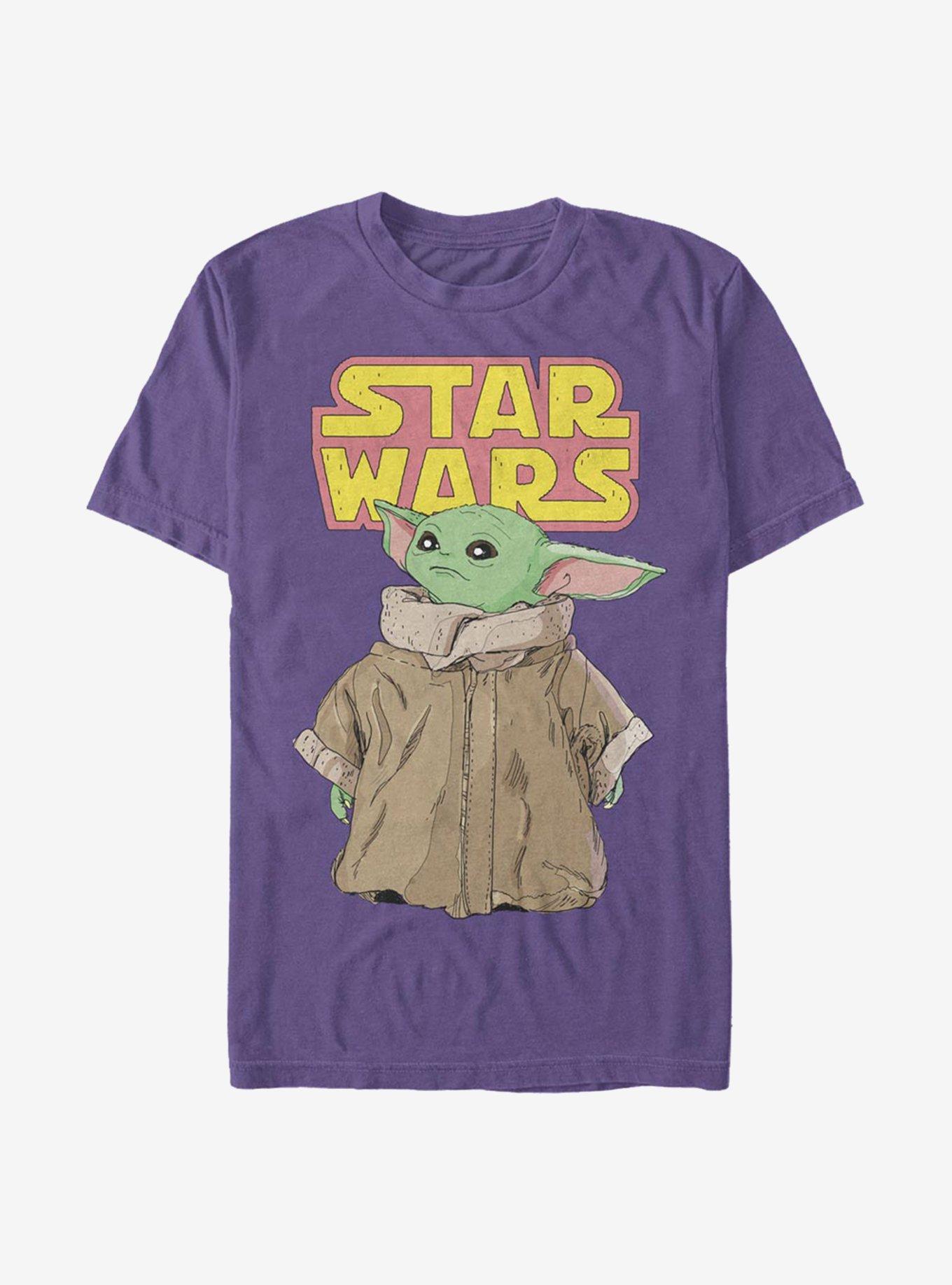 Talk about a fan favorite! This purple tee features Grogu, AKA The Child -- from the Disney+ series The Mandalorian -- below a big, bold Star Wars logo.