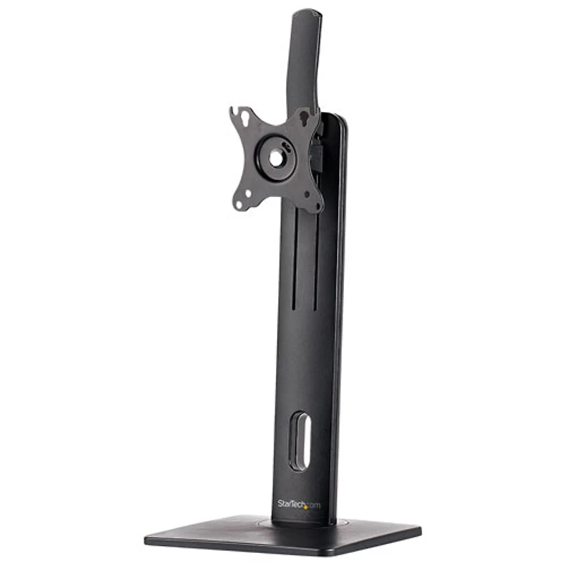 Securely mount and access your monitor with the StarTech single monitor standing mount. This mount accommodates VESA-compatible displays up to 32-inches for versatile mounting solutions. Its anti-slip base ensures stability, making it ideal for glass desks or surfaces where traditional mounts aren't feasible.