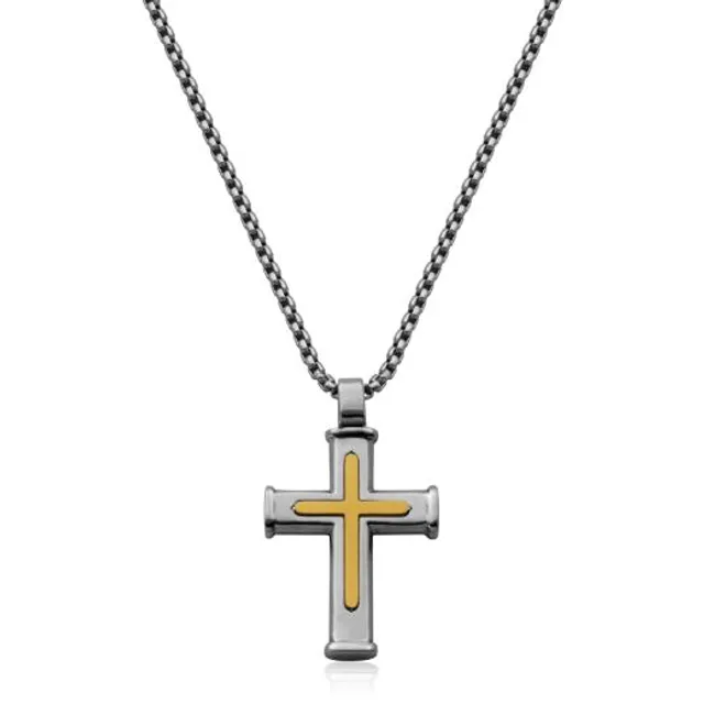 Men's Cross Pendant in Two-Tone Stainless Steel - 24"