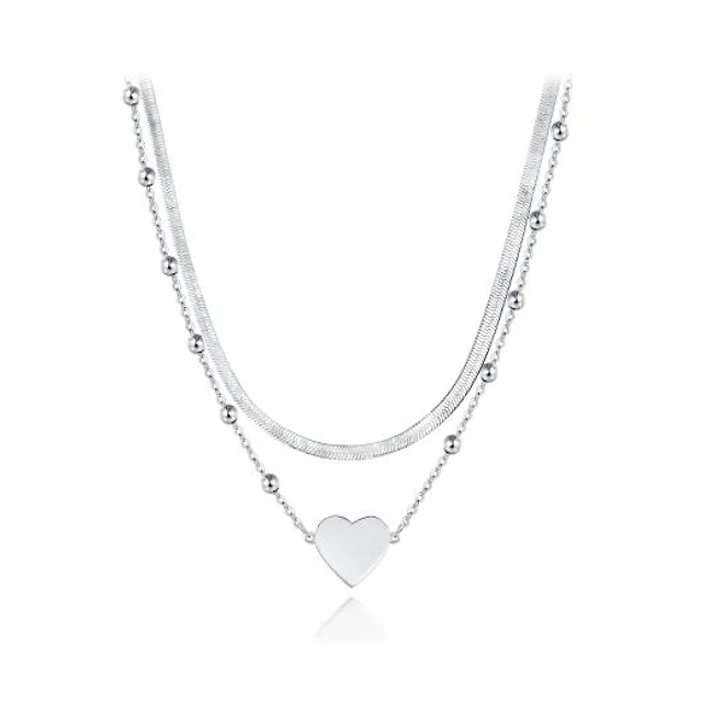 Sterling Silver 16"-18" Adjustable Layered Heart Necklace