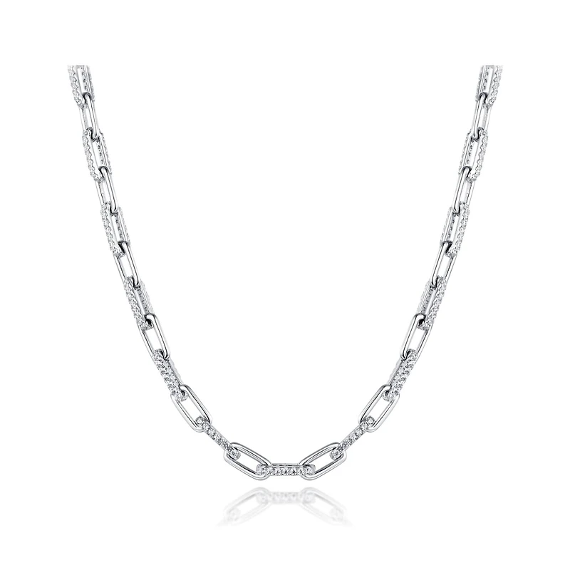 Sterling Silver 18" Cubic Zirconia Paperclip Link Necklace