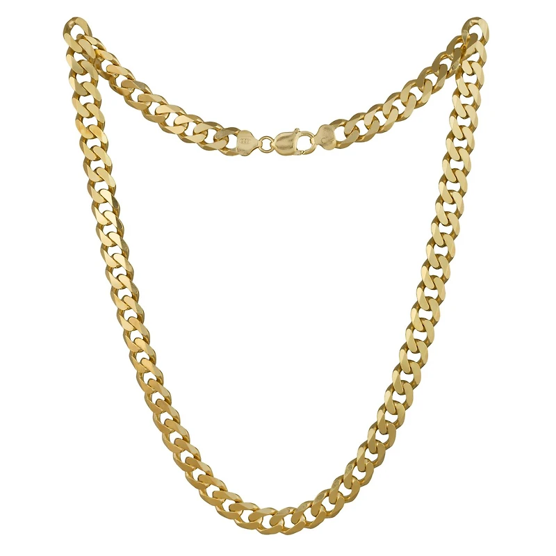 This 24-inch sterling silver curb chain is plated with 18K yellow gold, offering a luxurious and durable finish. The 10.8mm links create a bold, yet refined look, making it a standout piece that adds a touch of sophistication to any ensemble.