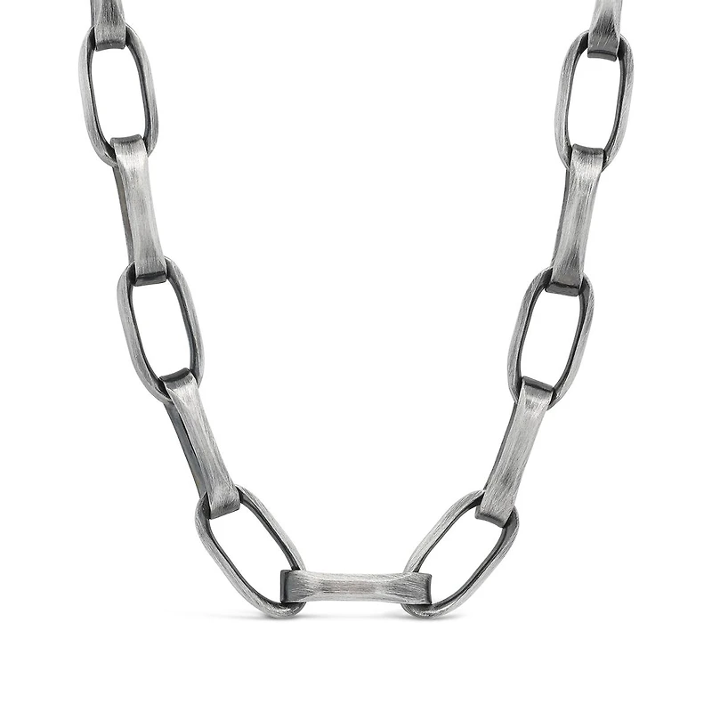 This 22-inch sterling silver chain, finished in a sleek gunmetal tone, redefines classic with a modern edge. The rolo links offer a balanced, rounded silhouette—while the dark metallic finish adds a layer of urban sophistication.