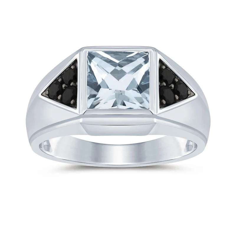 This ring is a great choice for those who appreciate modern and sophisticated accessories. Its unique combination of sterling silver, blue topaz and black diamonds, creates a striking contrast that is sure to catch attention. Whether as a fashion statement or a meaningful gift, this ring is a perfect choice for adding a touch of style and refinement to any outfit.