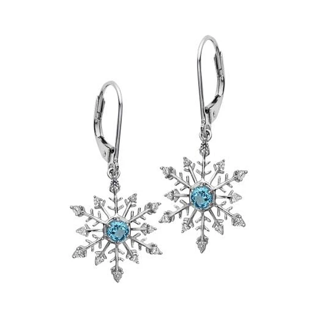 Sterling Silver Blue Topaz & Created White Sapphire Snowflake Earrings