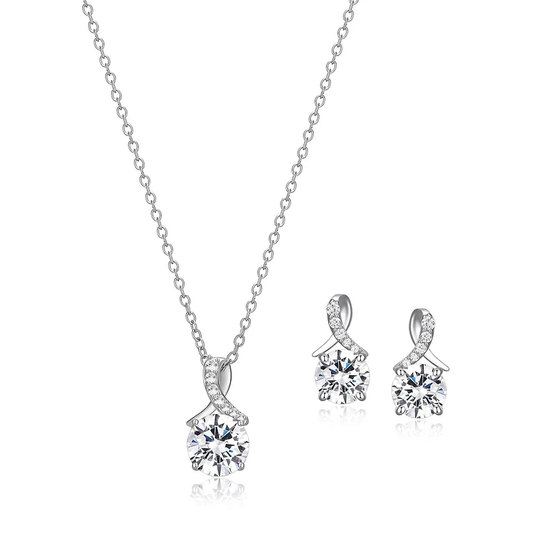 Sterling Silver Cubic Zirconia Earring and Pendant Set