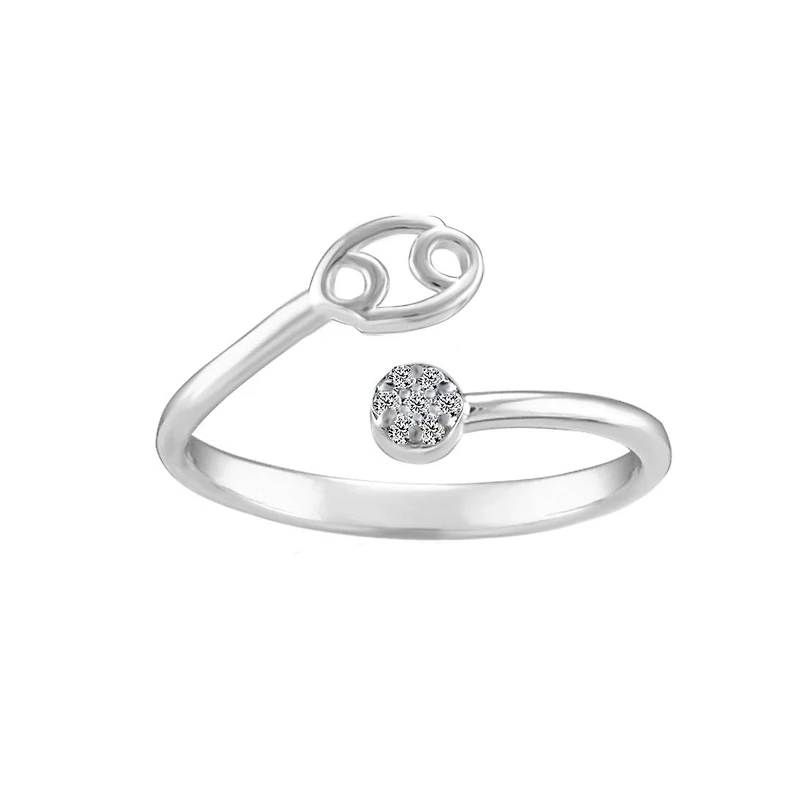 Sterling Silver Diamond Cancer Zodiac Ring - Size 5