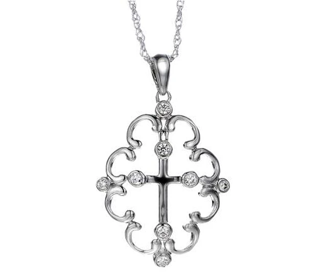 0.10 CT. T.W. Diamond Cross Pendant in Sterling Silver