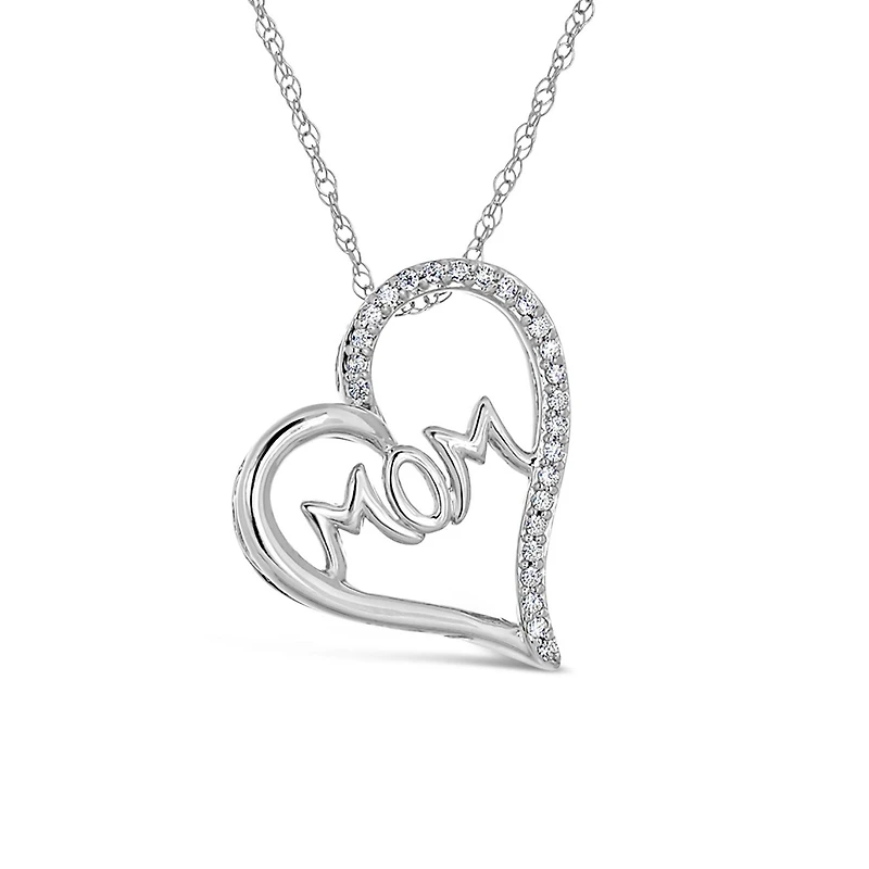 Wrap Mom with love and give her this lovely sterling silver Mom pendant. Shining with 0.06ctw of sparkling diamonds, Mom will wear it close to her heart on an 18" rope chain.