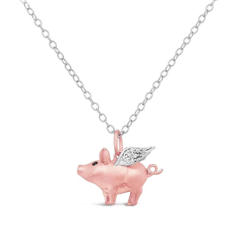 Sterling Silver Diamond 'When Pigs Fly' Pendant