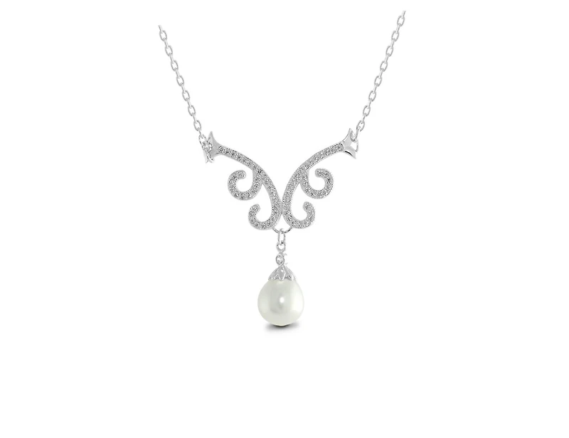 Express you love with this gorgeous freshwater pearl pendant. Featuring a beautiful solitaire pearl dangling from and intricate design adorned with sparkling cubic zirconia. This unique piece will sure to be treasured for years to come.