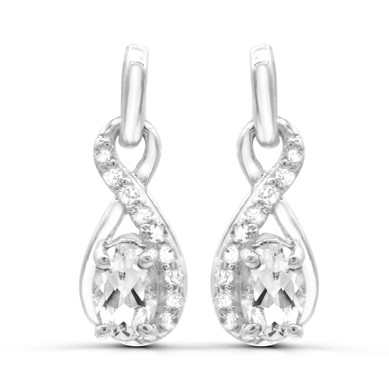 These modern yet classic, infinity design earrings are crafted in gleaming sterling silver and are sure to become a favourite item in your jewellery collection.  This item is perfectly adorned with shimmering white topaz, which is the alternative birthstone for April. If you are looking for something stunning, order this for yourself or someone you love today!