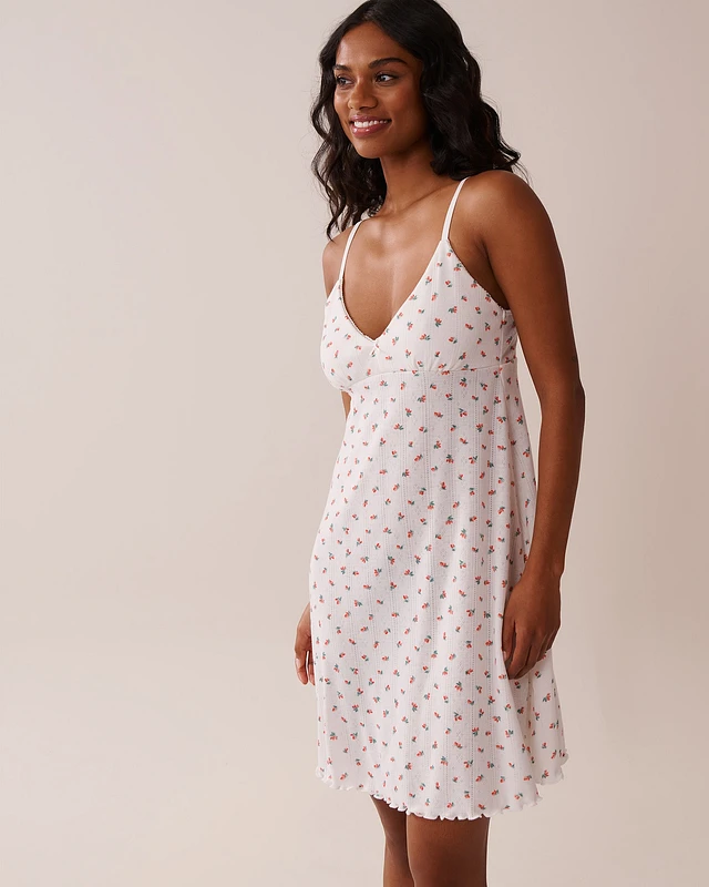 Strawberry Print Lettuce Edge Pointelle Nightie