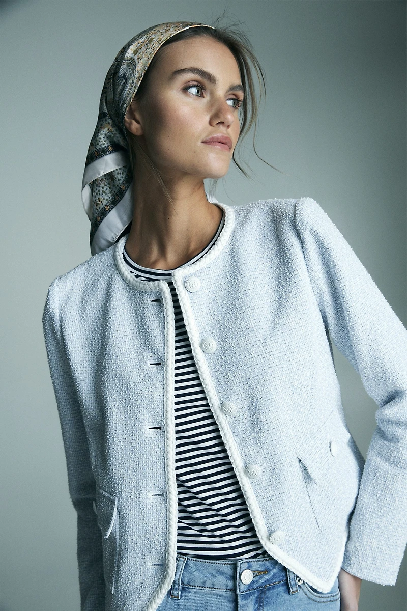 Elevate your style with this women's stretch jacket, featuring refined ribbon detailing for a chic and modern look. Perfect for pairing with both tailored pants or casual jeans, this piece effortlessly bridges day to evening sophistication.