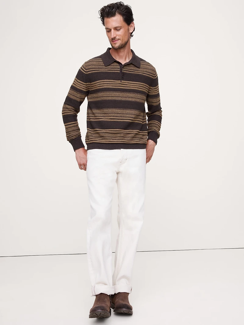 We're on a mission to make a better-than-vintage sweater polo. Here, a cotton-linen yarn alternates colors to create a retro striped effect with texture. Standard fit: A straight and easy fit. Polo collar with button placket. Straight hem.