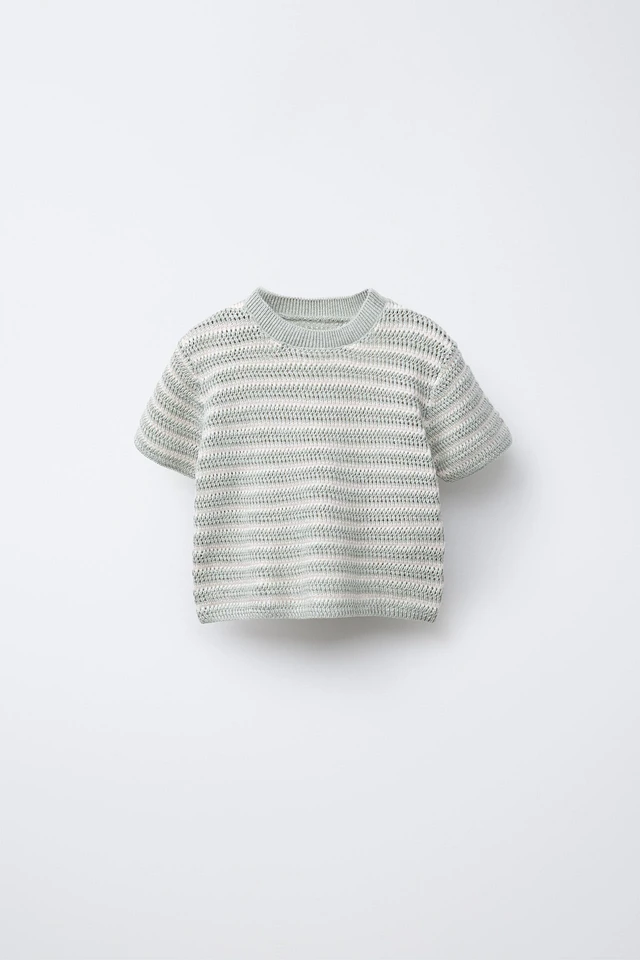 STRIPED SHORT SLEEVE KNIT SWEATER