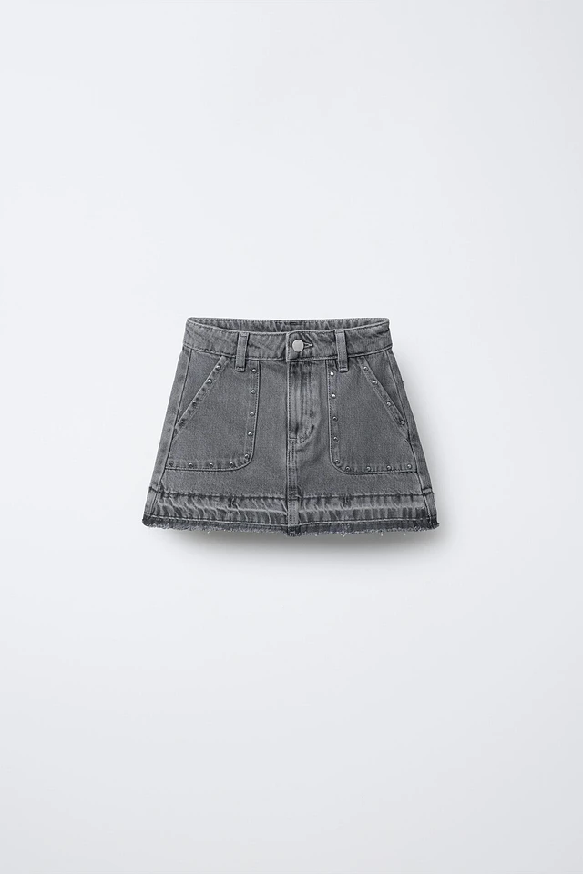EMBROIDERED BUTTERFLY DENIM SKIRT