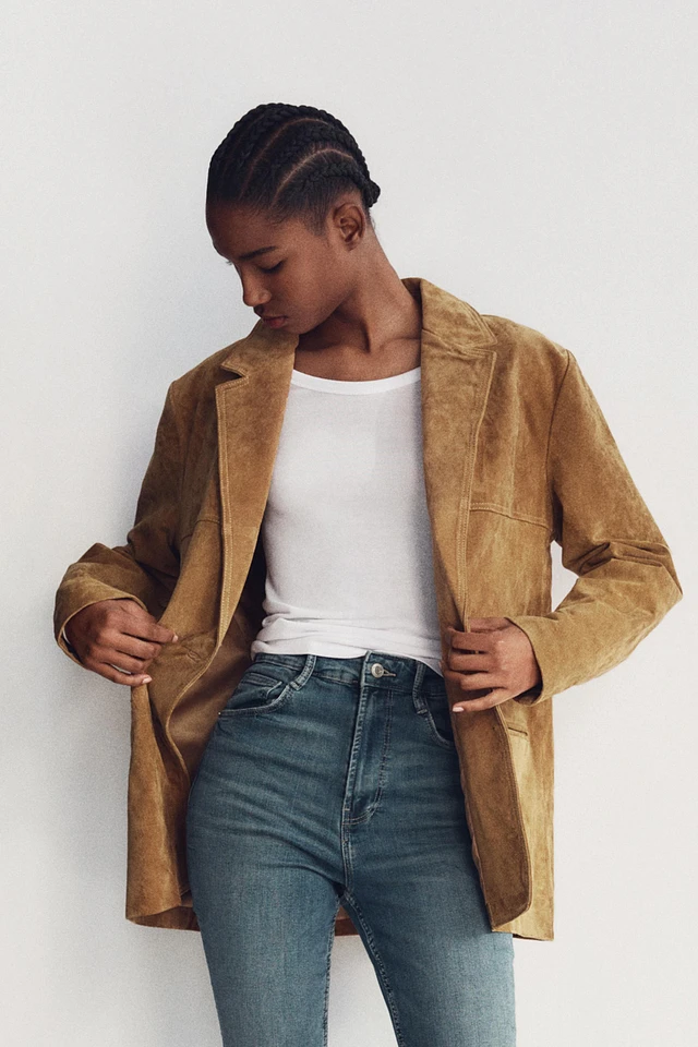 Suede leather blazer