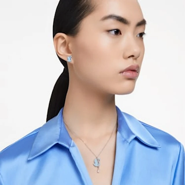 Swan necklace, Dancing swan, Blue, Rhodium plated by SWAROVSKI