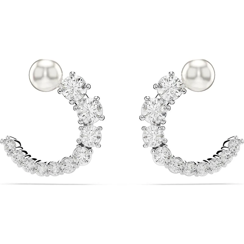 These Matrix hoop studs from Swarovski offer a bold and modern take on classic hoop earrings. Featuring intricate crystal detailing, the earrings sparkle with every movement, adding a touch of sophistication to any look. Their sleek, contemporary design makes them versatile enough for both casual and formal occasions, delivering a refined yet fashionable statement of luxury.