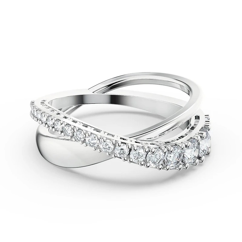 The twist effect adds depth and movement to the ring, while the shimmering crystals catch the light from every angle, adding a touch of glamour.