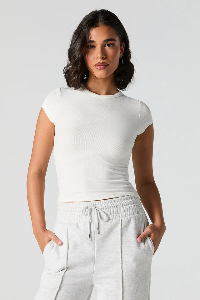 T-shirt ultracourt côtelé sans couture avec encolure carrée