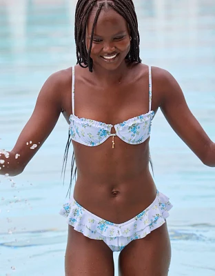 Frills thrill on this high-cut bottom, with playful ruched back and ruffled skirt.