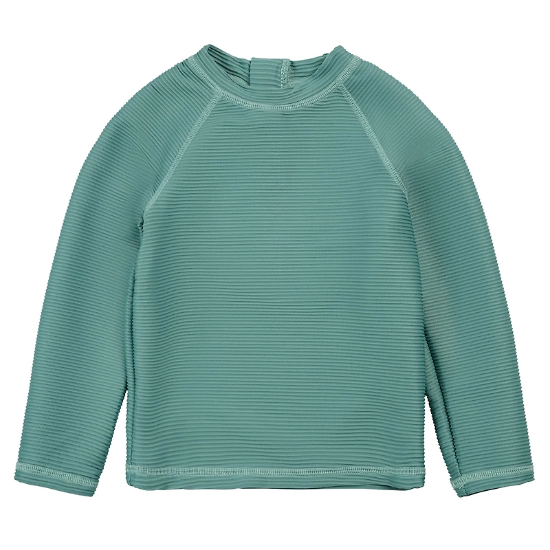 This ribbed, neutral rash guard keeps little ones covered up for long, sunny days by the water. Designed with a zip at the back and built-in UPF 50+, the rash guard ensures full coverage while offering a light and comfortable feel. Long sleeved pieces are perfect for those who need extra protection from chilly waters and salty shores, and the quick-drying fabric allows them to transition from pool to picnic and back again with ease.