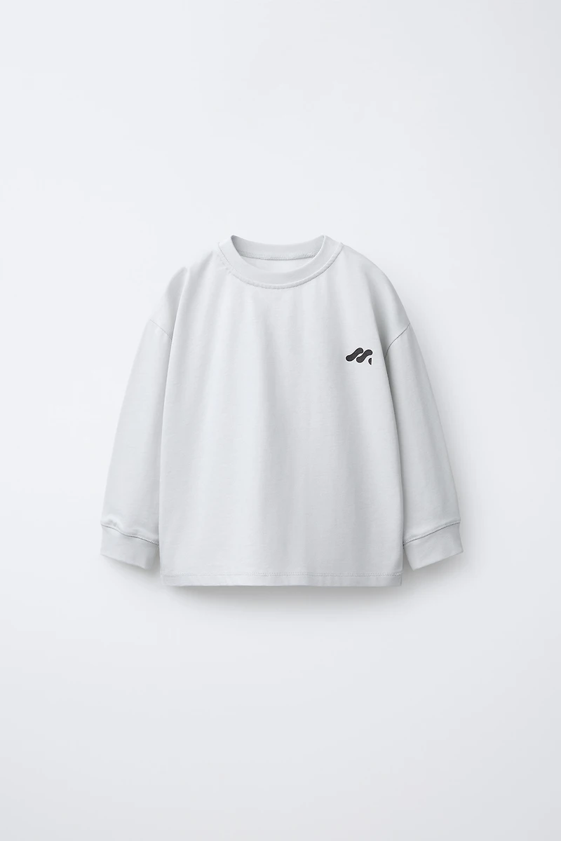 Round neck T-shirt with long cuffed sleeves. 100% cotton fabric. Thermosensitive logo detail that reacts to heat.