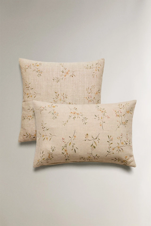 THROW PILLOW COVER WITH BRANCHES AND FLOWERS