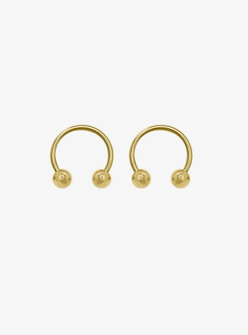 Set of 2 titanium gold plated circular barbells with ball ends. Jewelry care: Wash with antibacterial soap and warm water. Piercing care: Wash hands thoroughly, then clean piercing with H2Ocean (sold separately) or saline solution.
