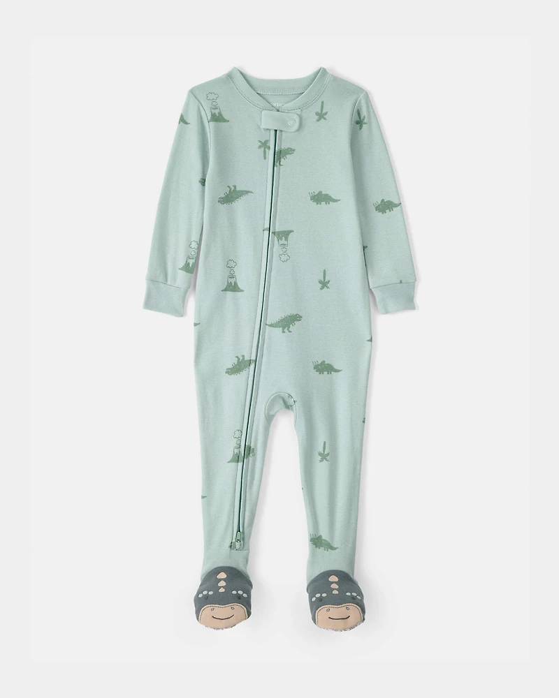 Toddler Dinosaur 100% Cotton Snug Fit 1-Piece Pyjama Set - Green