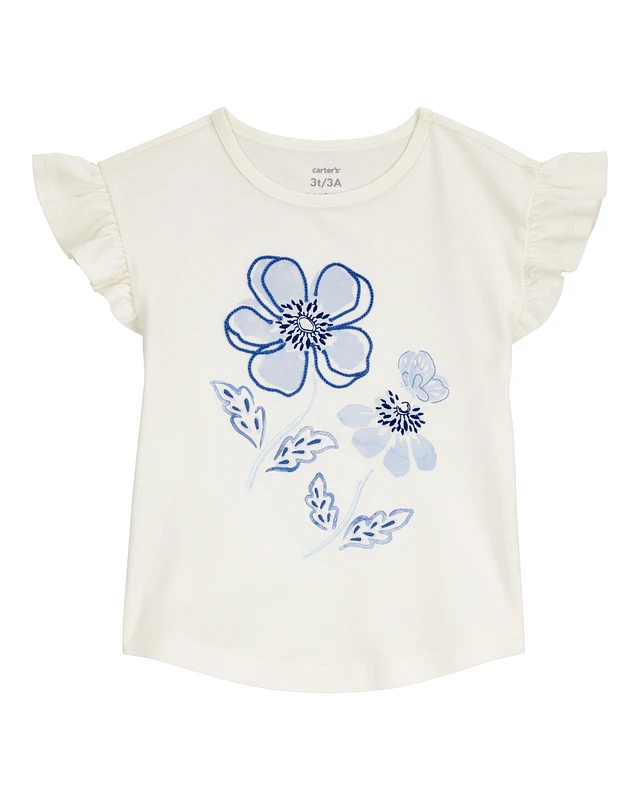 Toddler Girl Floral Cotton Ruffle Long-Sleeve Top - White