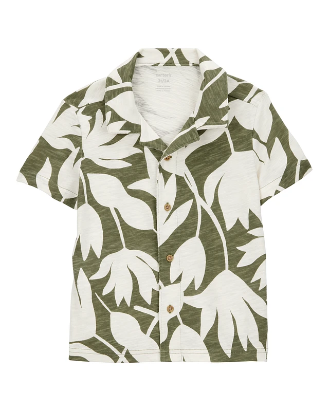 Toddler Tropical Print Cotton Short-Sleeve Fashion Top - Olive/White