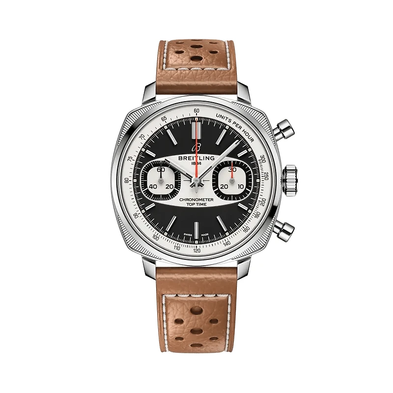 Introduced in the transformative 1960s, Willy Breitling’s unconventional line of racing-inspired chronographs captured the era’s freewheeling vibe. Today, the new Top Time collection channels that adrenaline-fueled energy, blending modern-retro design with cutting-edge performance. Instantly recognizable, the Top Time Martini Racing takes its cues from one of the most celebrated liveries of all time. Its dial is dominated by Martini Racing’s signature light blue, dark blue, and red stripes. It features a modern-retro take on the cushion case, squircle subdials, and the unmistakable surfboard dial design. Sized at a sleek 38 mm, it’s paired with a perforated dark blue calfskin leather strap secured by a folding clasp. Beating inside the watch is the Breitling’s flagship Manufacture Caliber 01—a COSC-certified chronometer built for precision under pressure and featuring a 70-hour power reserve. Limited to 750 pieces, The Top Time Martini Racing blends retro aesthetics with modern comfort.