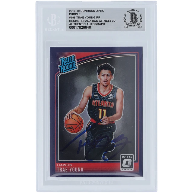 Trae Young Atlanta Hawks Autographed 2018-19 Panini Donruss Optic Rated Rookie Purple #198 Beckett Fanatics Witnessed Authenticated Rookie Card