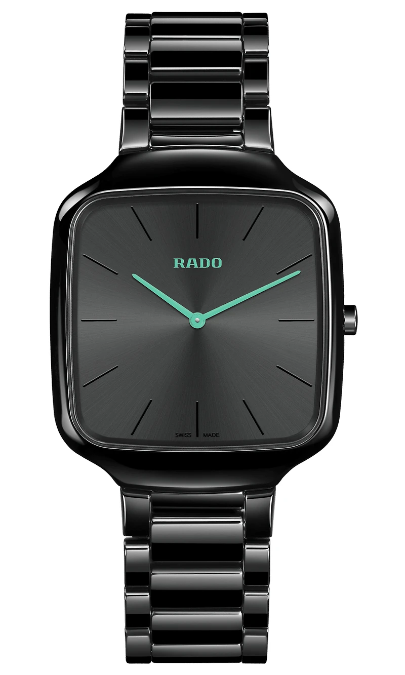 Experience the harmonious blend of artistic expression and Swiss precision with the Rado True Square Thinline. Powered by a reliable Quartz Rado calibre R420 movement, this watch ensures precise timekeeping with effortless elegance. The 37 mm case size strikes the perfect balance between style and wearability, making it suitable for any occasion. The polished black high-tech ceramic case and crown exhibit a bold and contemporary aesthetic, embodying the essence of modern design. With its monobloc construction and flat sapphire crystal, this watch exudes durability and timeless elegance. The dial features a tone on tone sun brushed black dial with turquoise lacquered hands and turquoise printed Rado logo. Crafted with precision, the polished black high-tech ceramic bracelet complements the case, creating a seamless and cohesive look.