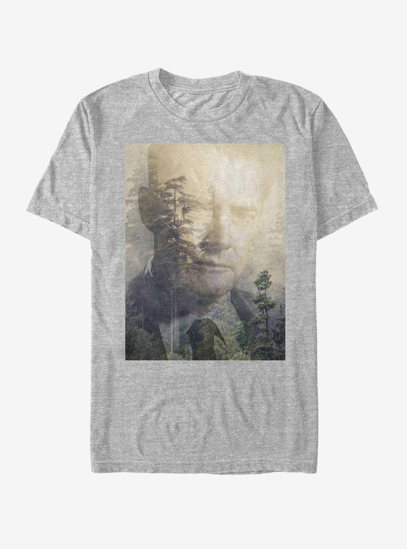 That gum Cooper likes is going to come back in style and the Twin Peaks Agent Cooper Fade Heather Gray T-Shirt will never go out of style! Agent Cooper fades across a backdrop of the Twin Peaks' forest on this awesome gray Dale Cooper shirt. 60% Cotton, 40% Polyester.