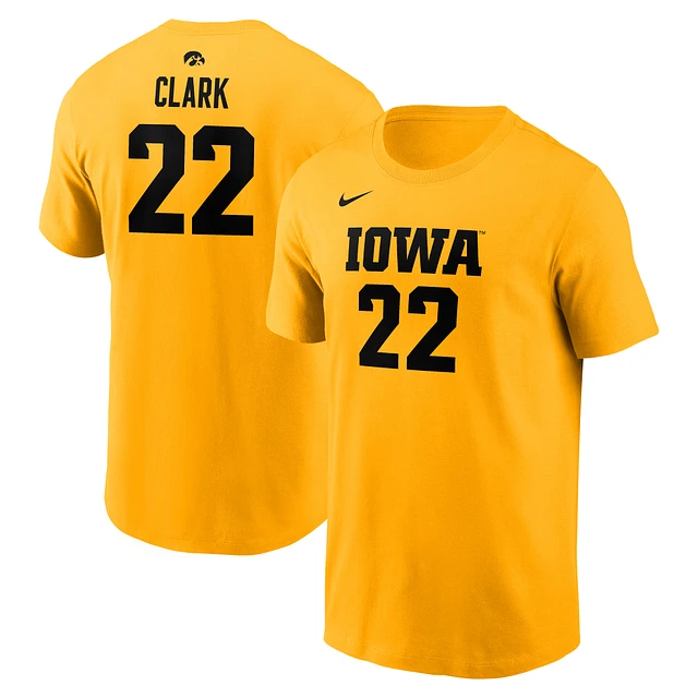Unisex Nike Caitlin Clark Gold Iowa Hawkeyes Retired Player Name & Number T-Shirt