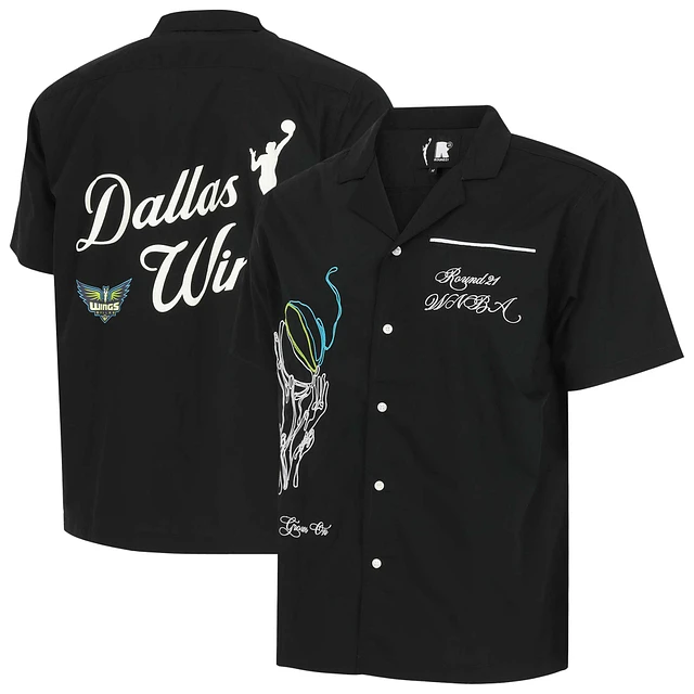 Unisex round21 Black Dallas Wings Lucky Strike Full-Button Bowling Shirt