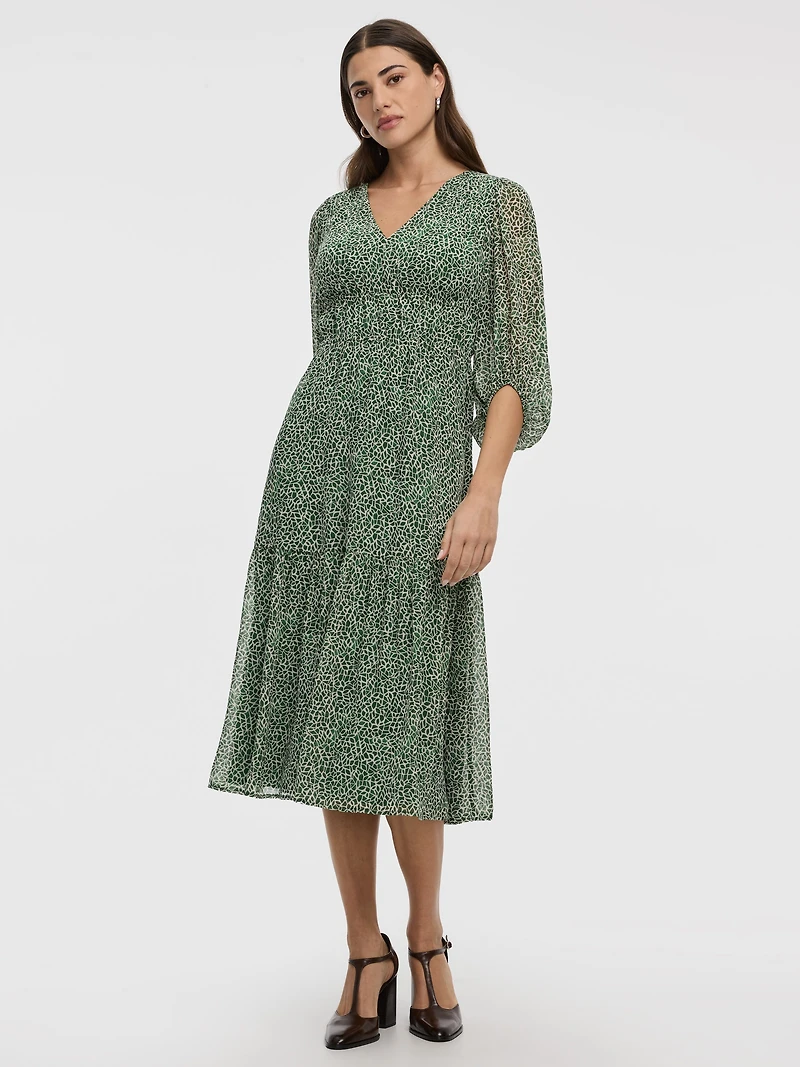 V-Neck Empire Midi Dress with Sheer Sleeves
