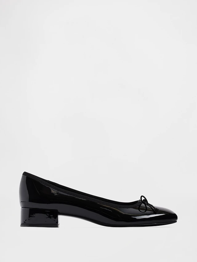 Girls Bow Faux Patent Leather Low Heel Shoes