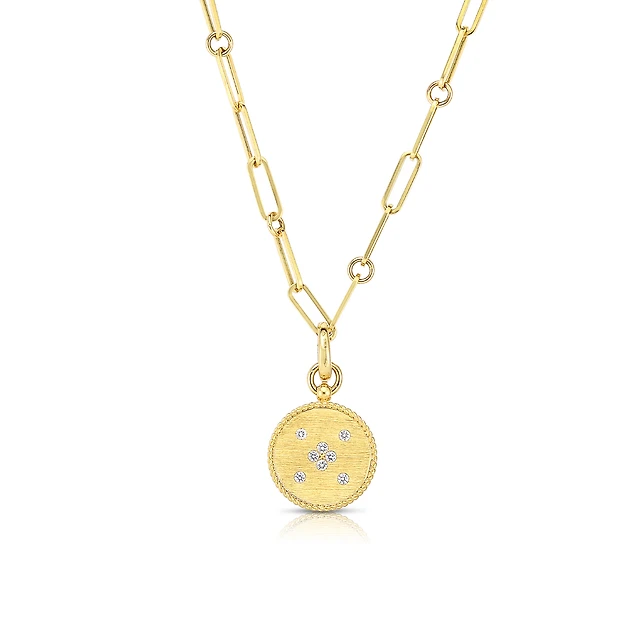 Venetian Princess Small Yellow Gold and Diamond Medallion Necklace