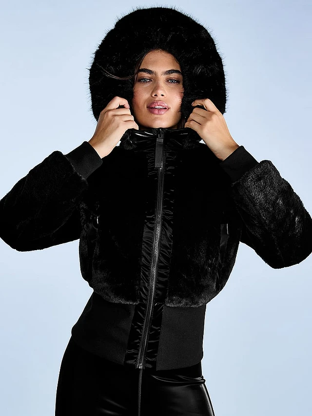 SHINY HOODED PUFFER JACKET WITH FAUX FUR LINING