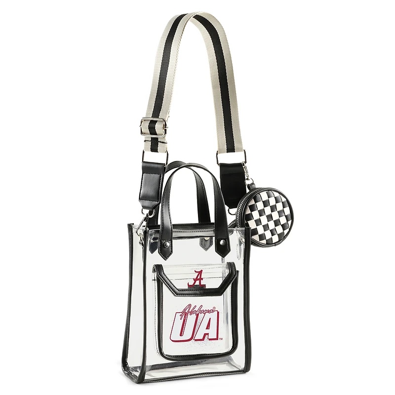 Head to the next Alabama Crimson Tide game in style while keeping your belongings safe and secure with this Clear Stadium Crossbody Purse with Coin Pouch from WEAR by Erin Andrews. The clear design ensures you breeze through stadium security, while the team graphics proudly display your Alabama Crimson Tide loyalty.