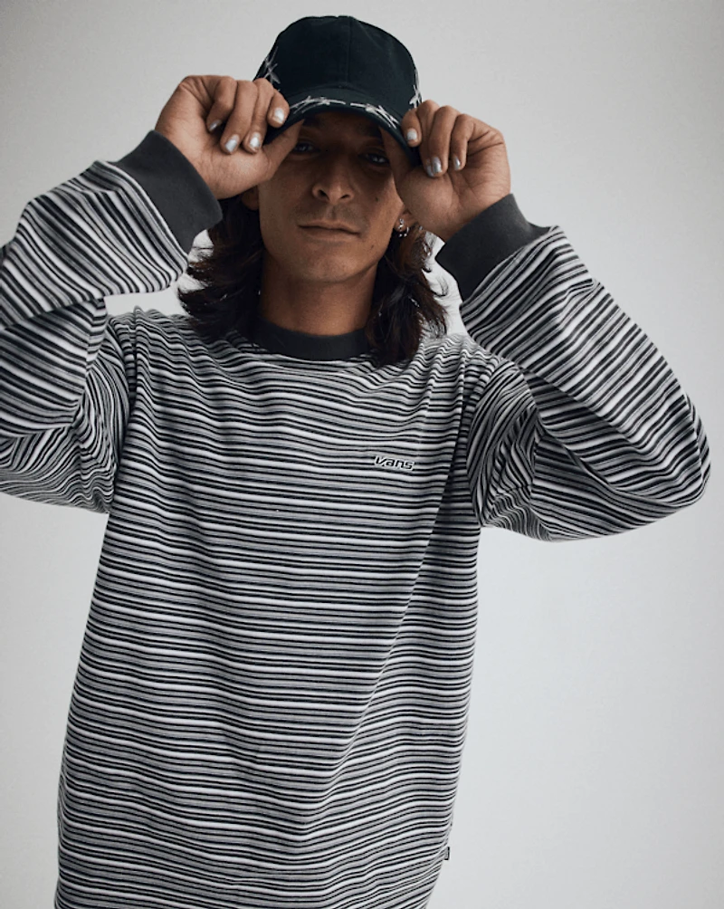 This loose-fitting long sleeve tee brings effortless Vans style to your everyday wardrobe. Crafted from heavyweight jersey fabric, it features a classic striped pattern and garment-washed finish for that perfectly broken-in feel right from the start. The relaxed fit and soft cotton construction make it an easy go-to for casual comfort.